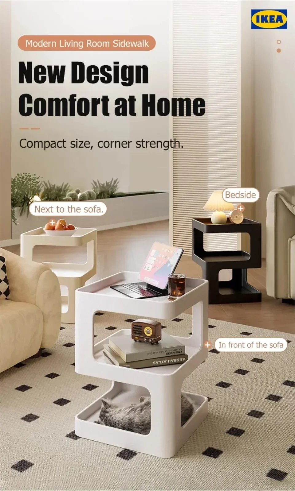 *Versatile and space-saving The modern and unique side table, whose size is perfect for placing next to the sofa in the living room, becomes a practical end table that can be used to place drinks, snacks, books or remote controls, etc. Or, it can be used as a nightstand in your bedroom for lamps, alarm clocks, or other nighttime necessities. It can be used in any room or small space.