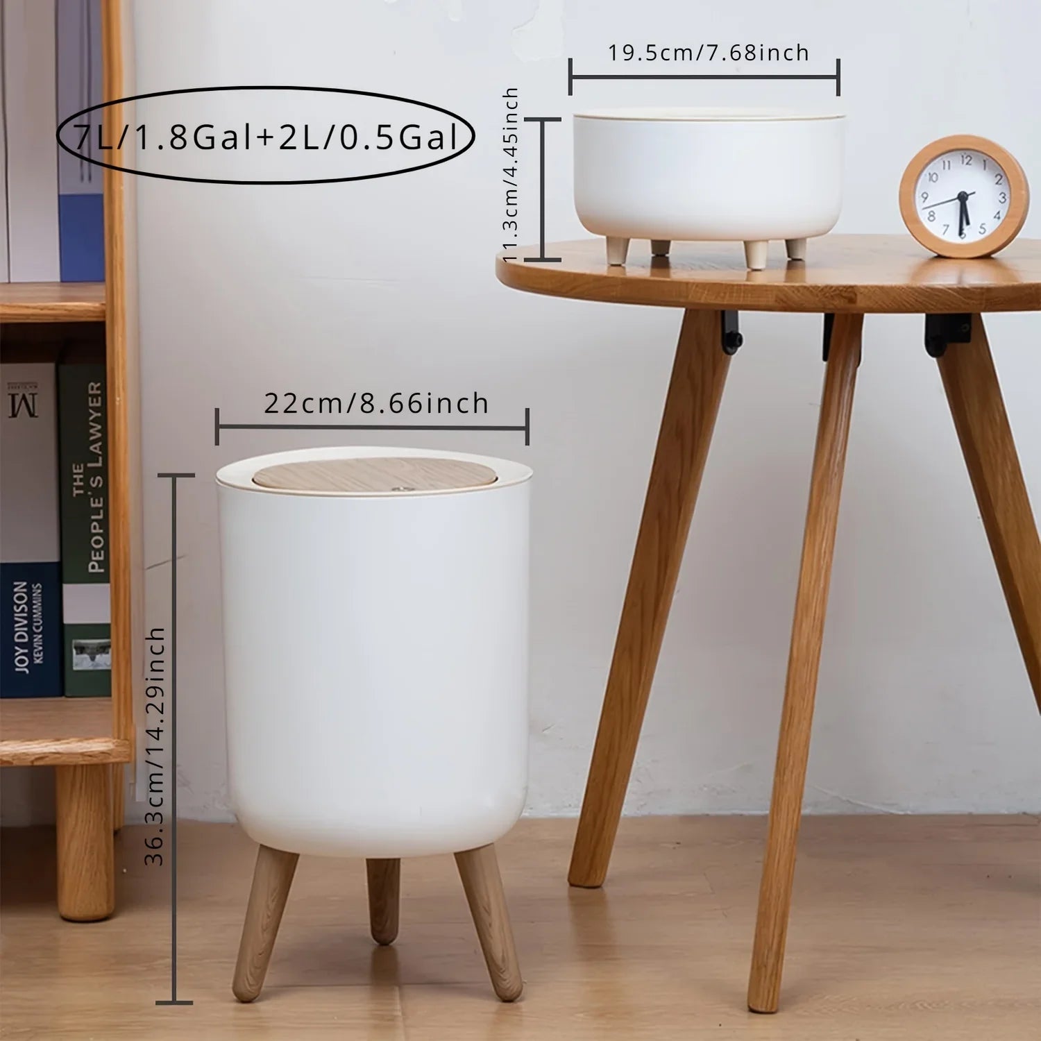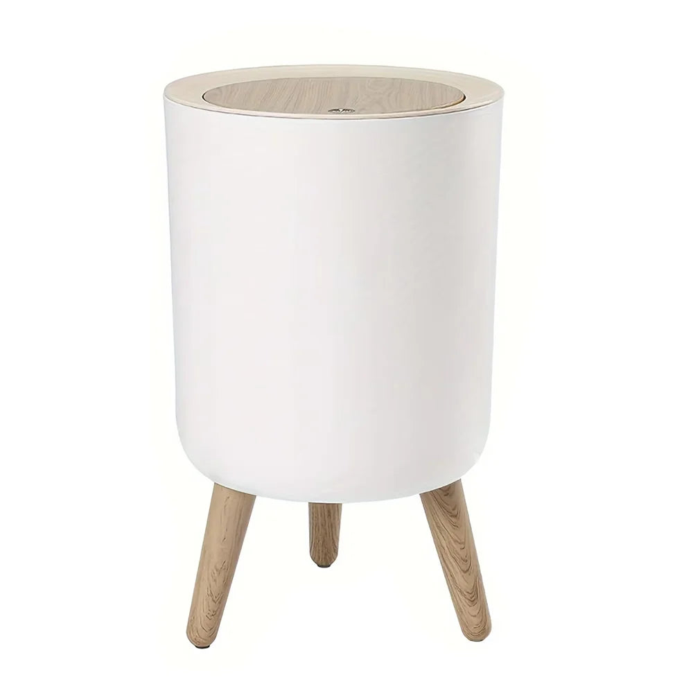 Round Trash Can With Lid, White Garbage Can With Foot, Paper Basket, Waste Bin For Bedroom Kitchen Bathroom Office Living Room