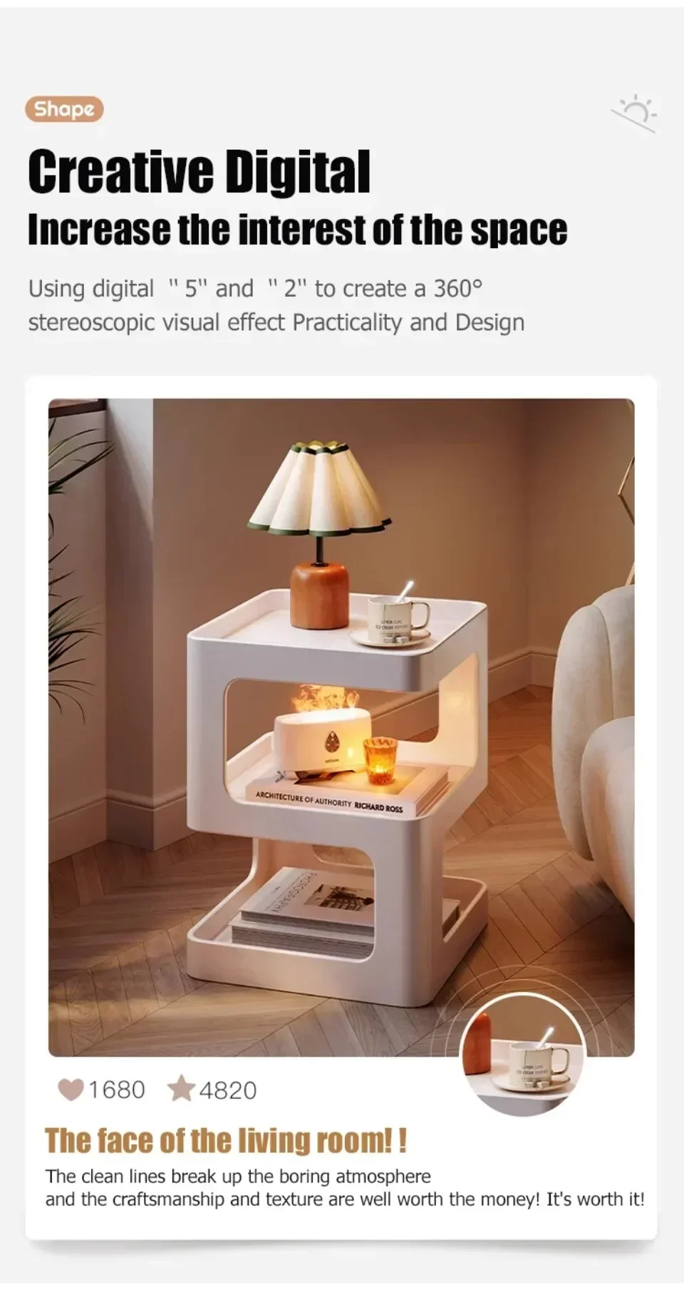 Simple Modern Bedside Side Table Space-Saving Multi-Functional Home Storage Rack Creative Stylish Removable 2-Tier Storage Table