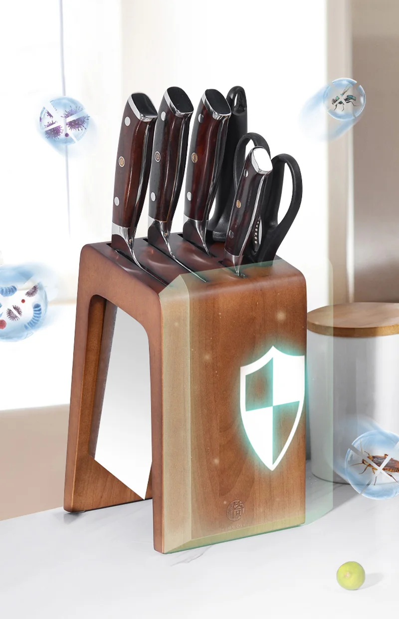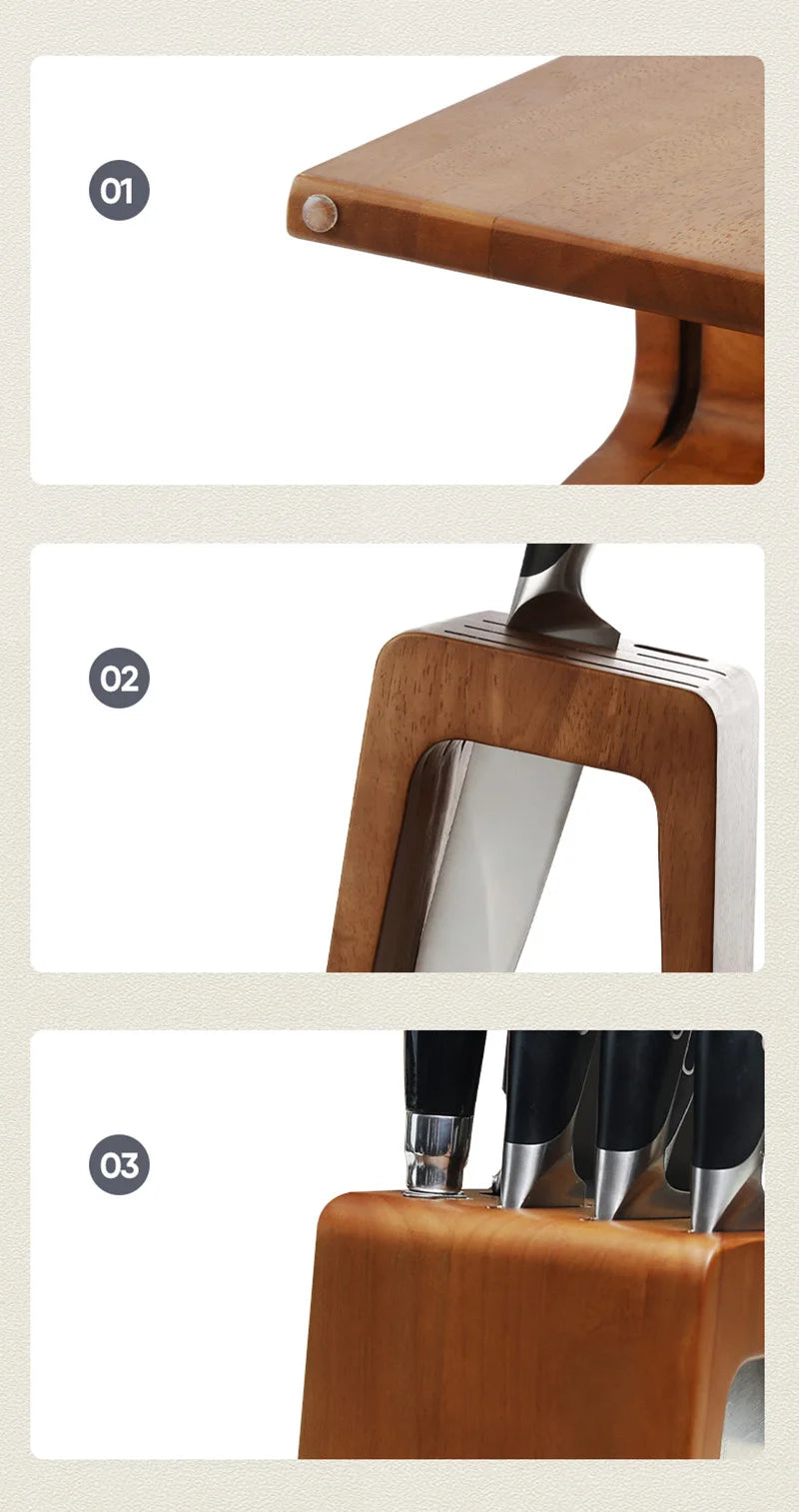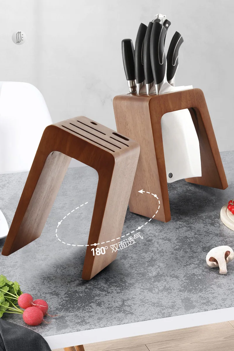 Thick Ebony Wood Kitchen Knife Holder Santoku Cleaver Storage Knife Rack Durable Knife Block Desktop Knife Stand Accessories