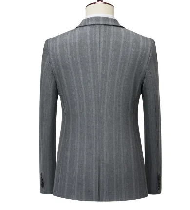 Vertical Stripe Men's Suit Homme Slim Fit Business Korean Edition Double Breasted Suit Wedding Banquet Set of 3 Pieces